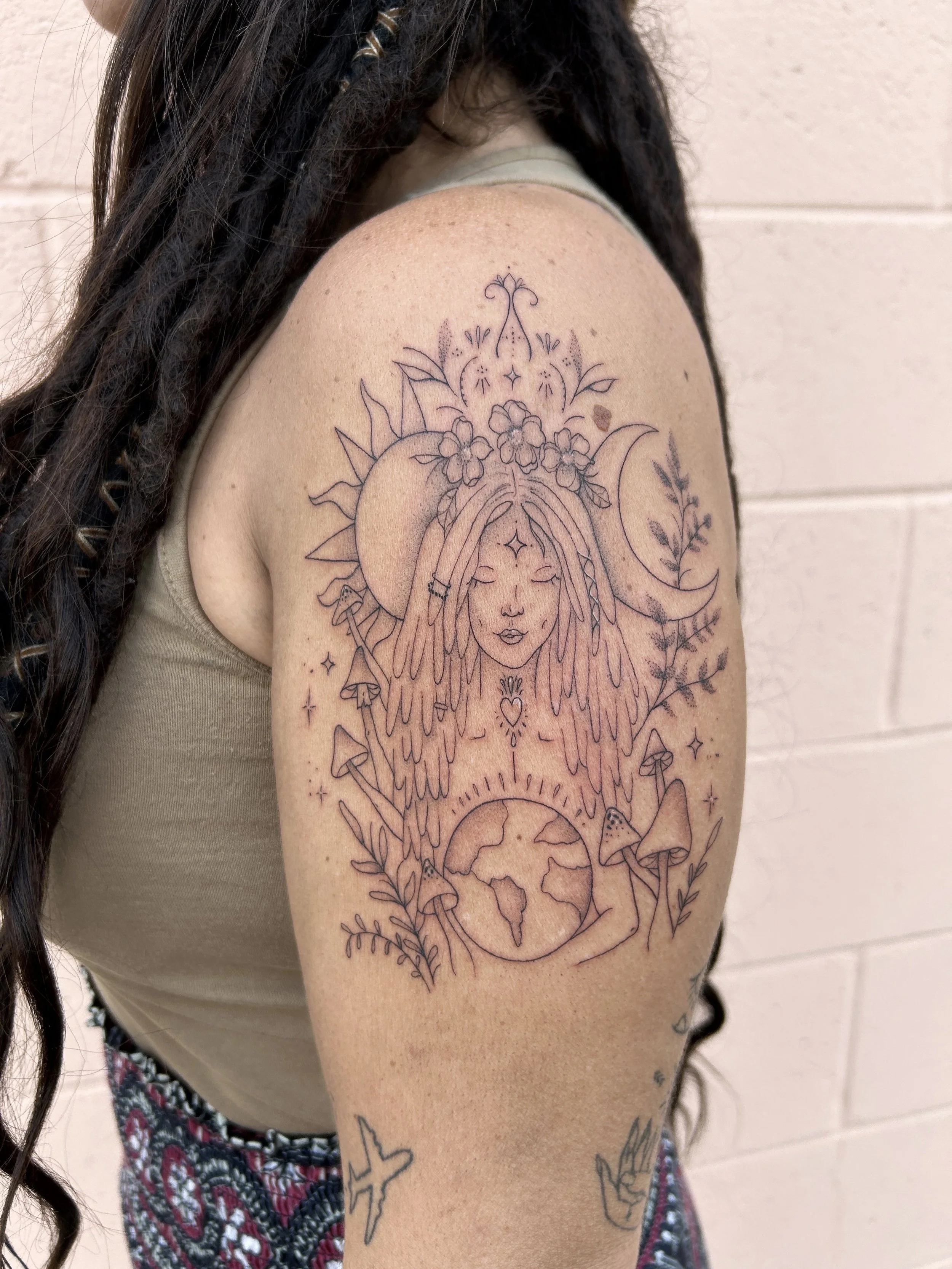 “She is the BEST tattoo artist I have ever been tattooed by (and I have over 40 tattoos so l've been around the block a time or two). She was so patient and let me replace my stencil several times without being frustrated. She allowed me to take multiple breaks during my tattoo and made me feel so comfortable and at home. The entire experience from beginning to end was blissful. Her vibes are immaculate and I can't praise her enough!”