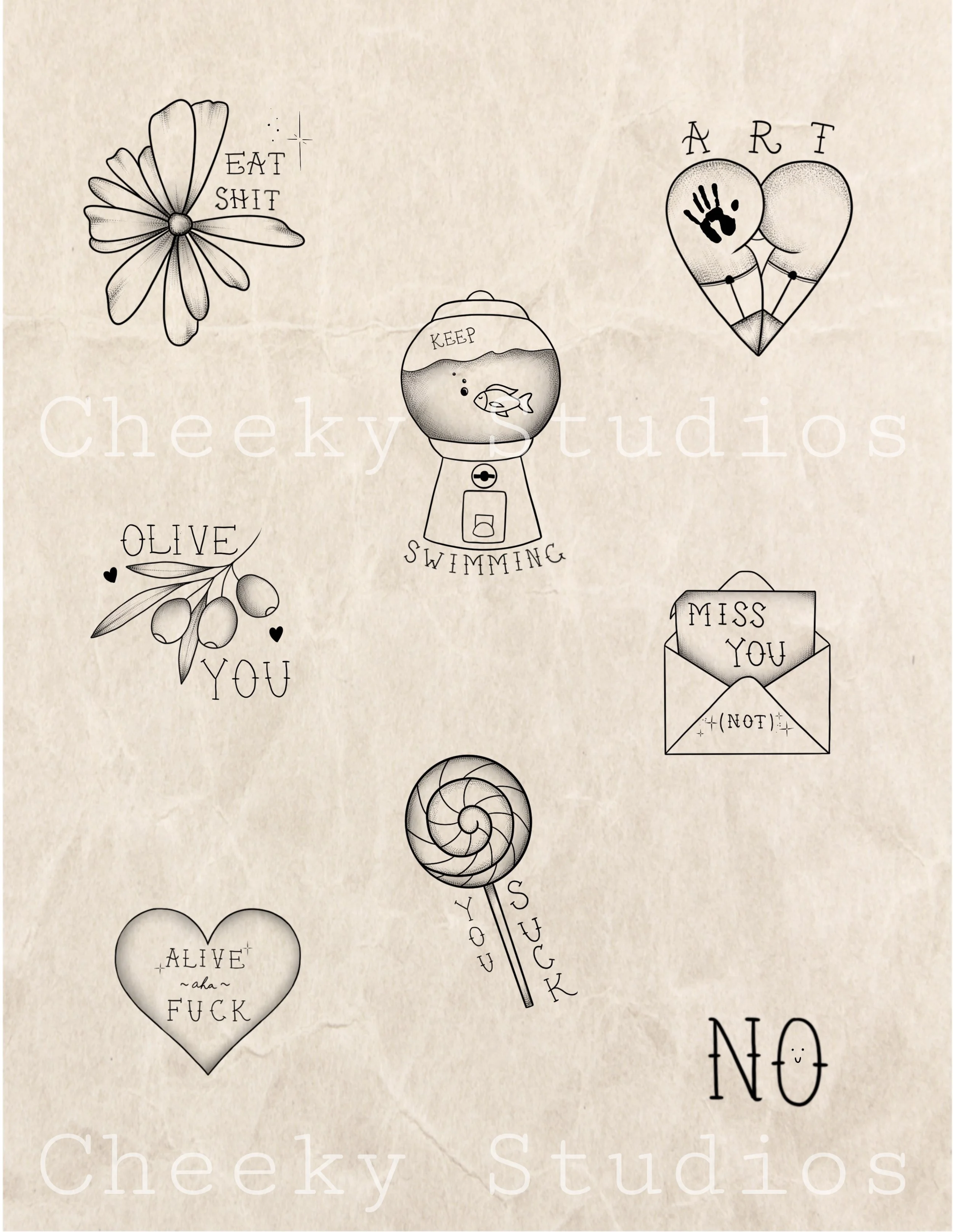 Available Flash Designs · · ─ ·𖥸· ─ · · Flash designs are pre-drawn tattoos that can be repeated as many times as someone wants it! book here